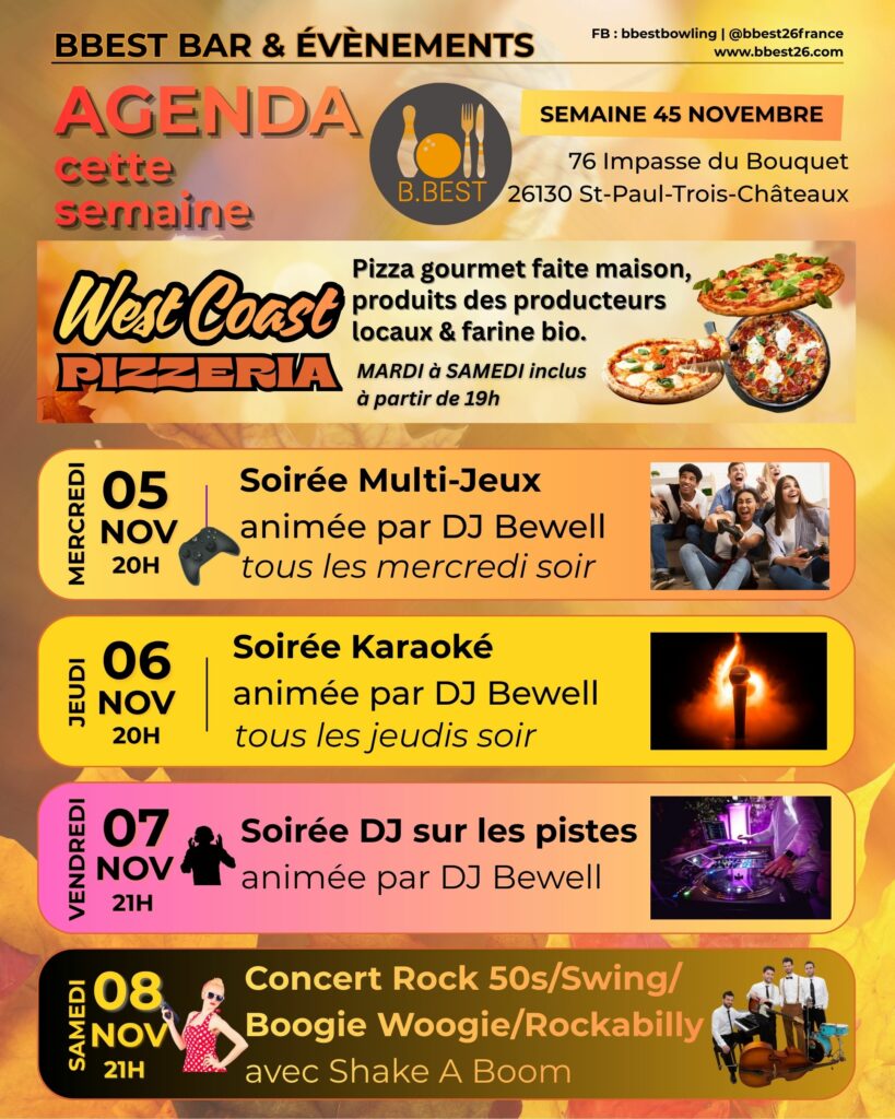 Nous sommes un grand centre style Californien (avec une équipe internationale, plusieurs langues parlées) équipé d’un bar ambiance (licence IV) avec une belle variété de boissons, d’une pizzeria ouverte à partir de 19h (West Coast Pizzeria), de 12 pistes de bowling homologuées à la compétition, d’une arcade avec plein de jeux, d’une salle de billard, d’une salle de séminaire à louer, de 2 grandes terrasses et d’un jardin zen.
