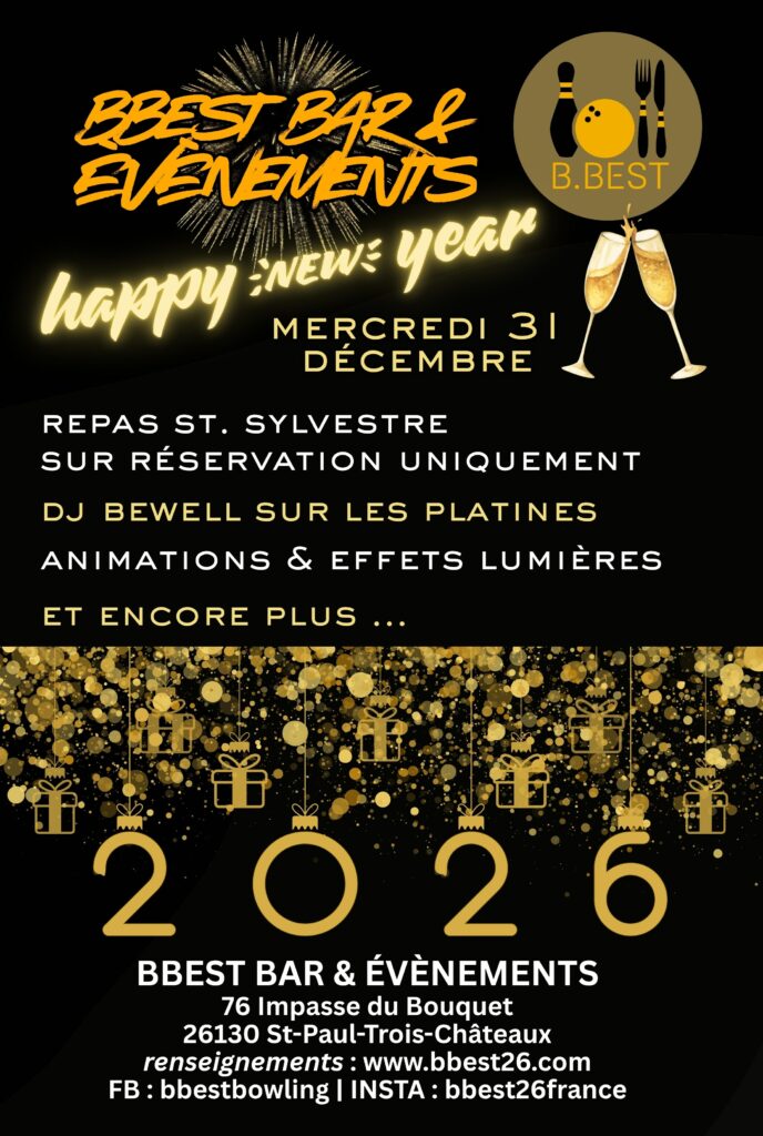 Fête du Réveillon 2025-26 Fête gratuite & ouverte au public Repas sur réservation uniquement Le Mercredi 31 décembre à partir de 17h HORAIRES EXCEPTIONNELS du centre de 17h au petit matin.Jeux, bar & billard disponibles au public à partir de l’ouverture à 17h.Repas débutera à 20h. Soirée dansante à partir de 22h. FÊTE DU RÉVEILLON animée par DJ BewellGratuite & ouverte au public~ Musique généraliste~ Effets lumières~ Jet de scène (étincelles froides)~ Goodies & petits cadeaux~ Compte à rebours ensemble ! MENU ST. SYLVESTRERepas sur réservation uniquement par mail ou sur place. Paiements & réservations doivent être effectué le dimanche à l’avance. DÉTAILS A VENIR …